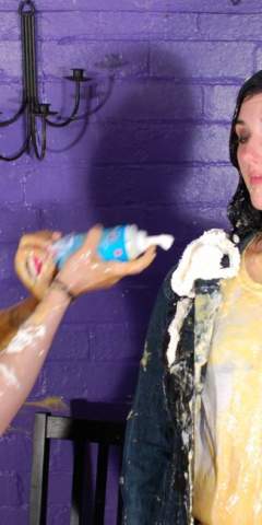 MessyGirlPeyton got a pudding-filled balloon busted over her head by LeRex